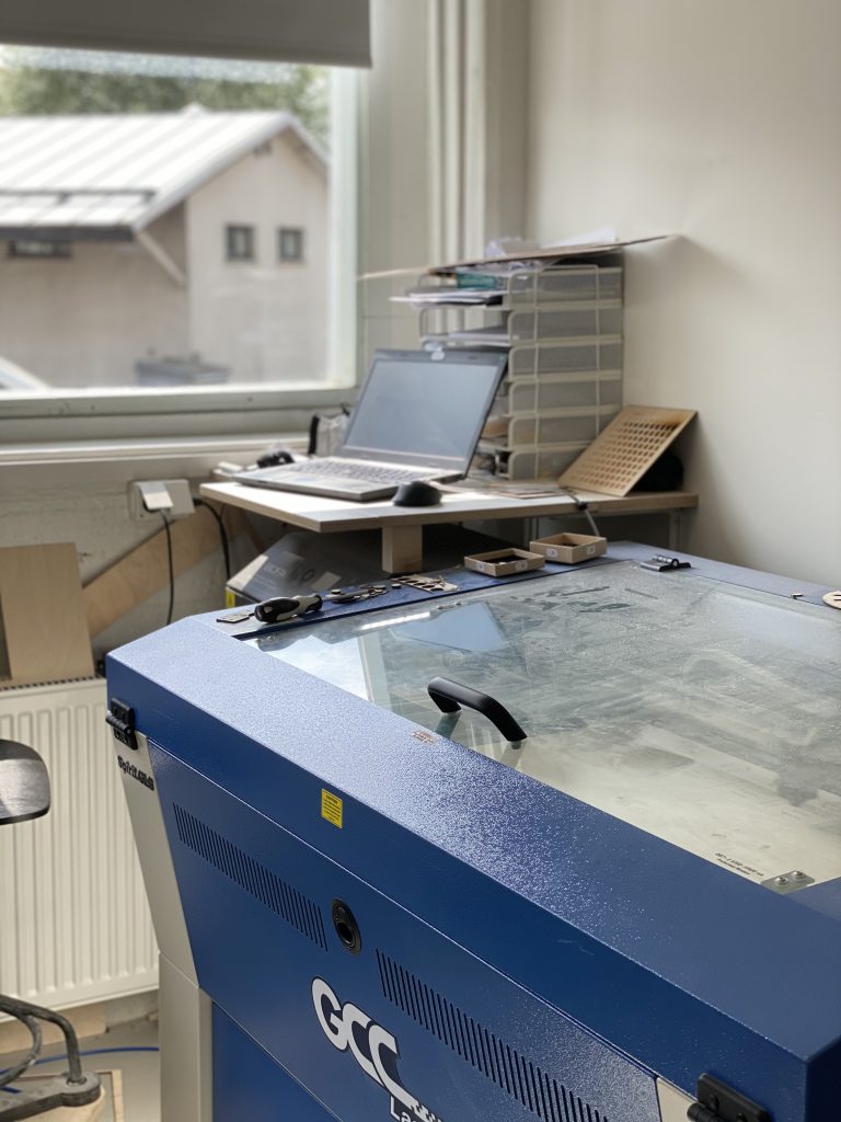 Taukotilan/keittiön takaa löytyy laserhuone, jossa on kaksi laserkonetta joilla tuotteet valmistetaan. Sen vieressä on tila, jossa säilytellään vanereita ja tarvittaessa maalaillaan niitä.